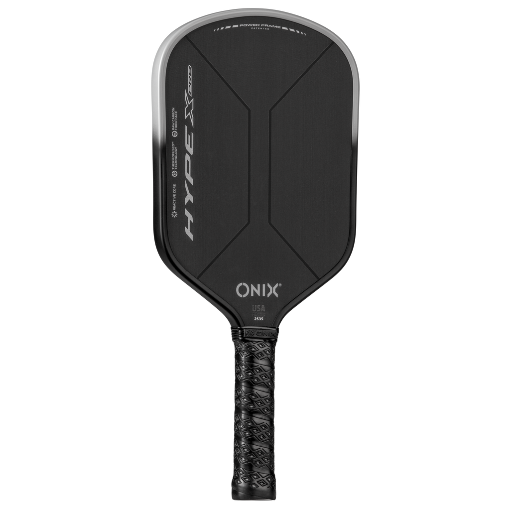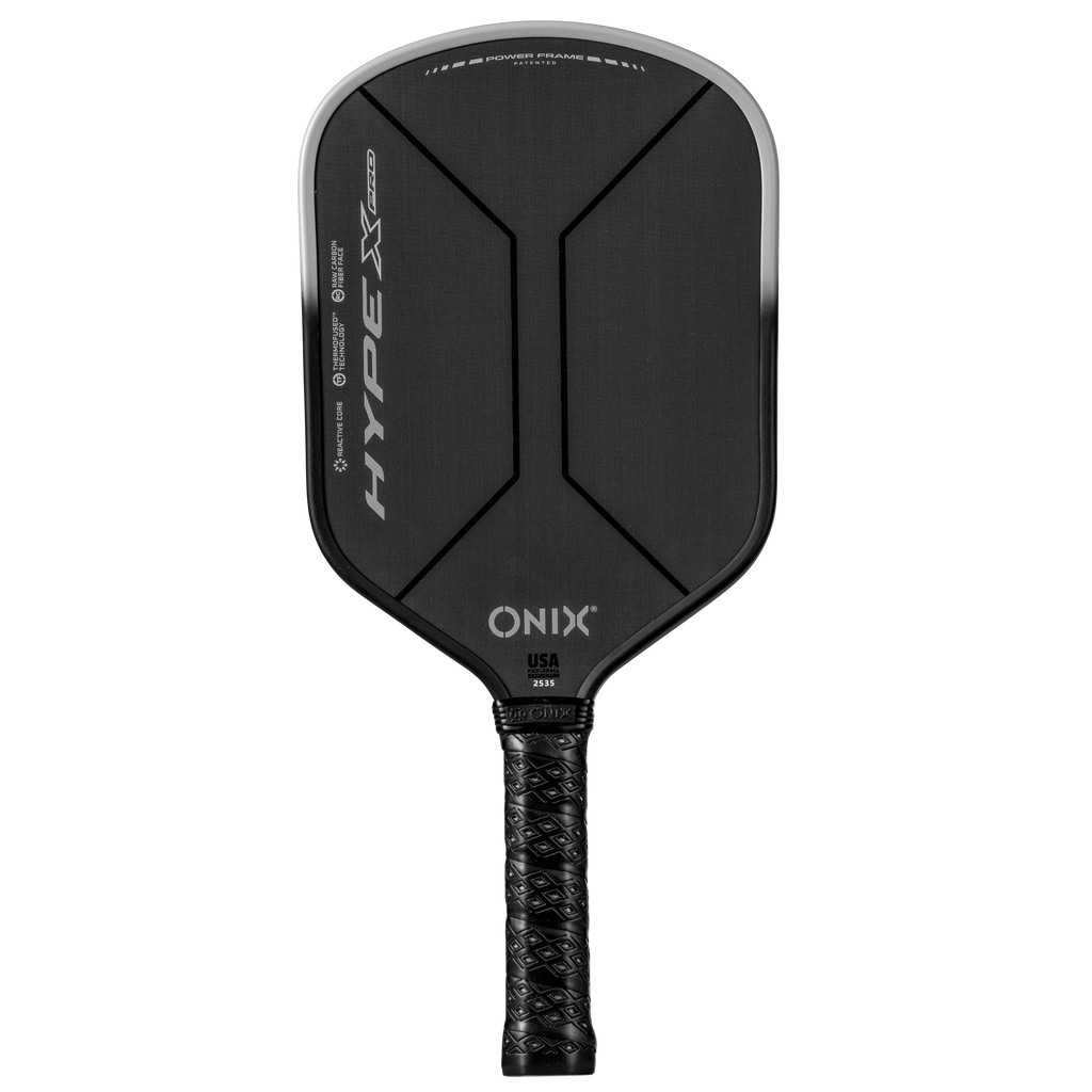 Introducing Hype X Pro. No fads or fluff. Just tested and perfected features that make your game more dynamic (with a Raw Carbon Fiber Face for more spin and Reactive Honeycomb Core for more pop), more consistent (with an elongated shape for a larger sweet spot) and more fun, for longer (with a patented Carbon Fiber Power Frame with ThermoFused™ Technology for more durability). All from a brand that's been around since before the boom.
