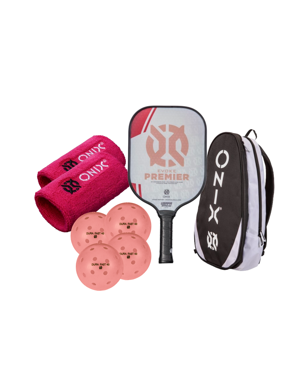 1. Evoke Premier Pickleball Paddle – Engineered for precision and power, the Evoke Premier features a broad hitting surface and advanced core technology that enhances control and consistency with every shot.